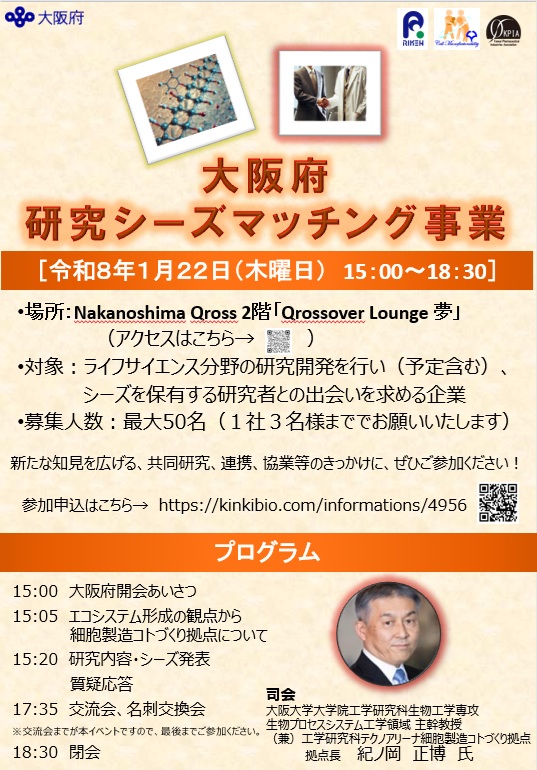 大阪府研究シーズマッチング事業(2026年1月22日開催)
