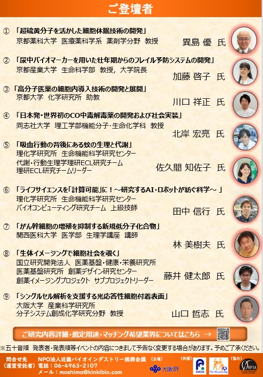 研究成果の社会実装をめざす研究者の方々との、共同研究、連携、協業等のきっかけに、ぜひご参加ください!